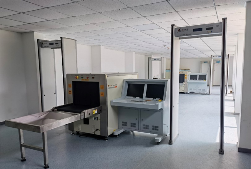 我校拥有安检实训室(即2台通道式X光机、6个通过式安检门),1间计算机教室的101台计算机均与安检实训室的通道式X光机实现联网,可即时进行物品现场过机实测;拥有近6000张的X光机过机图库。此教室目前主要用于公共交通安全检查培训和取证考核使用。